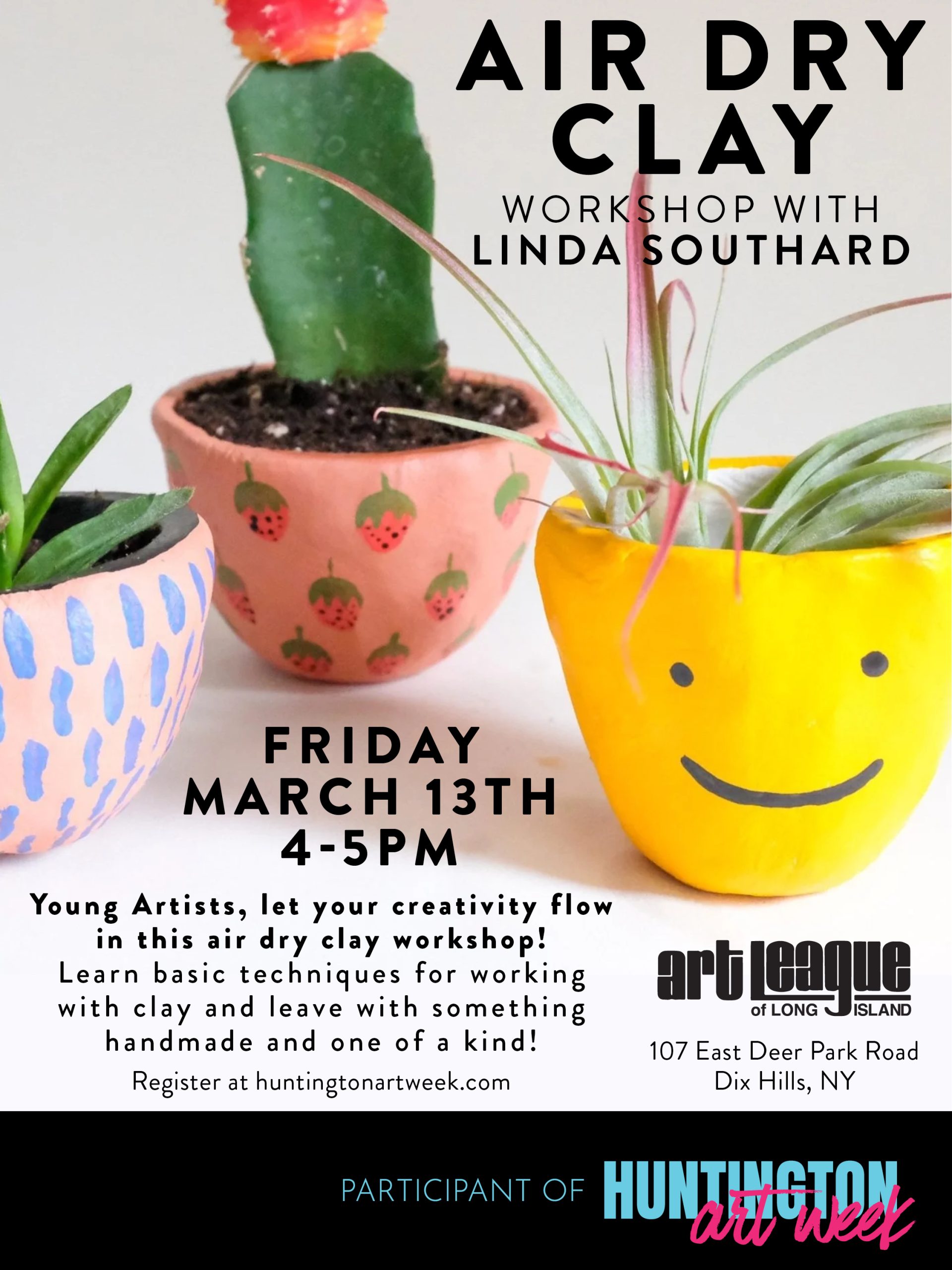 Let your creativity flow in this one hour air dry clay workshop! Learn basic techniques for working with clay and leave with something handmade and one of a kind!