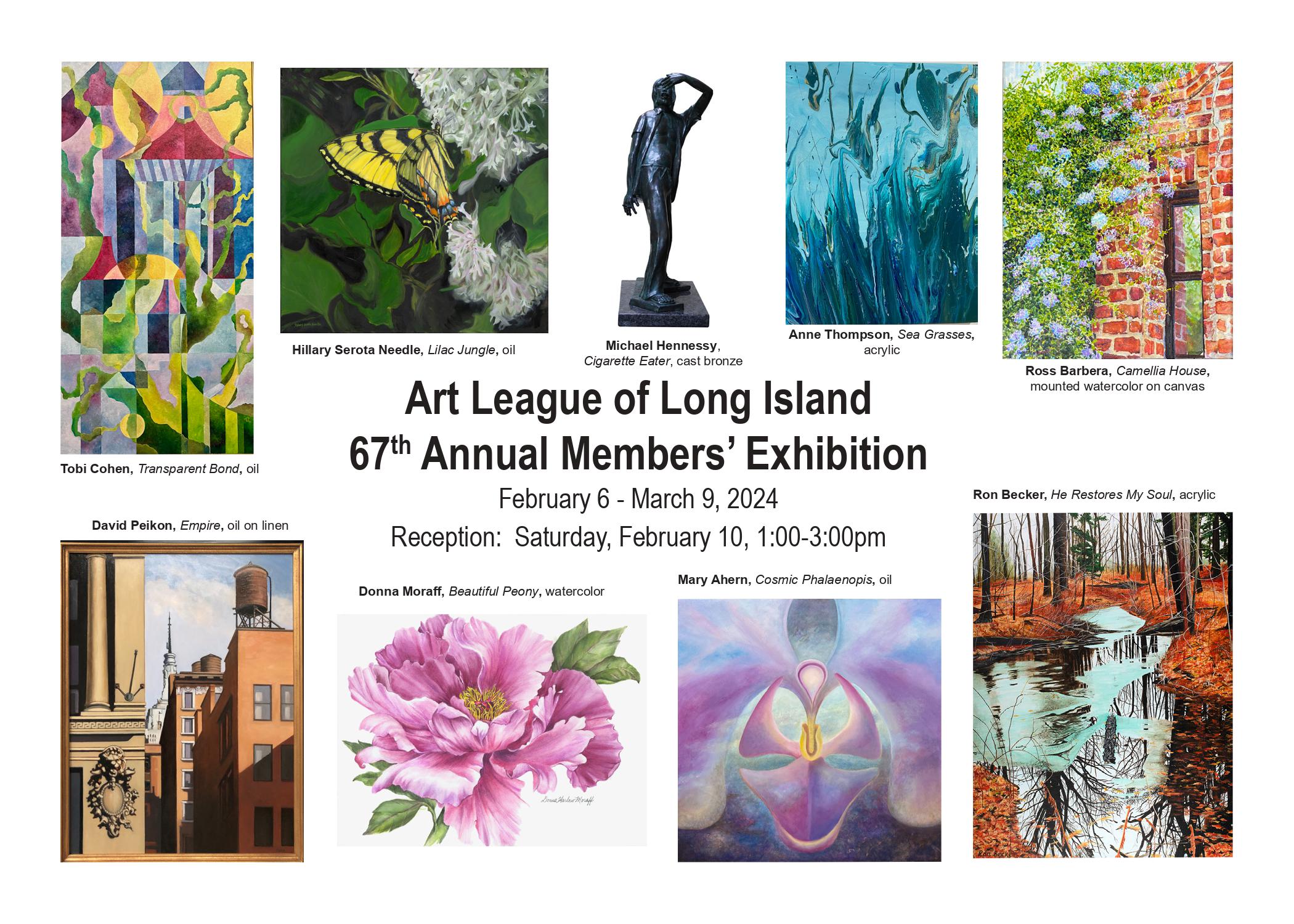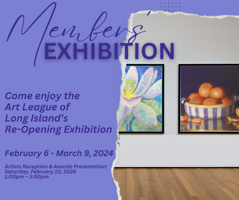 The Art League of Long Island’s annual exhibit features over 150 works of art created by their many talented members. Artists from all walks of life, those just beginning their journey into the visual arts and established exhibiting artists, will put their best foot forward exhibiting their artwork in mediums such as painting, drawing, collage, photography, printmaking, ceramics, sculpture, jewelry, fiber arts, glass art, wood, graphic art, and more.