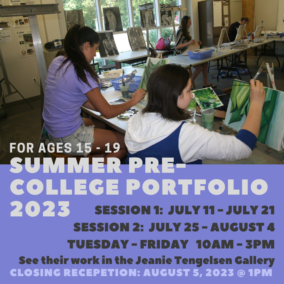Sessions take place in the Art League’s Jeanie Tengelsen Gallery. Student Gallery Exhibition with a closing reception will take place Saturday, August 5 from 1pm to 3pm.