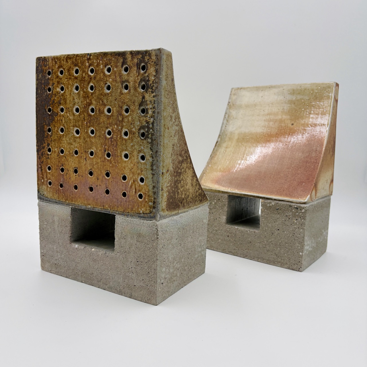 Dove’s new collection brings together wood-fired ceramic sculptures from 2025, and electric-fired works produced in my home studio. The contrast between these firing methods and material exploration generates a quiet tension within the work, opening a layered dialogue about time, process and how unseen structures endure; both within the landscape and the imagination.