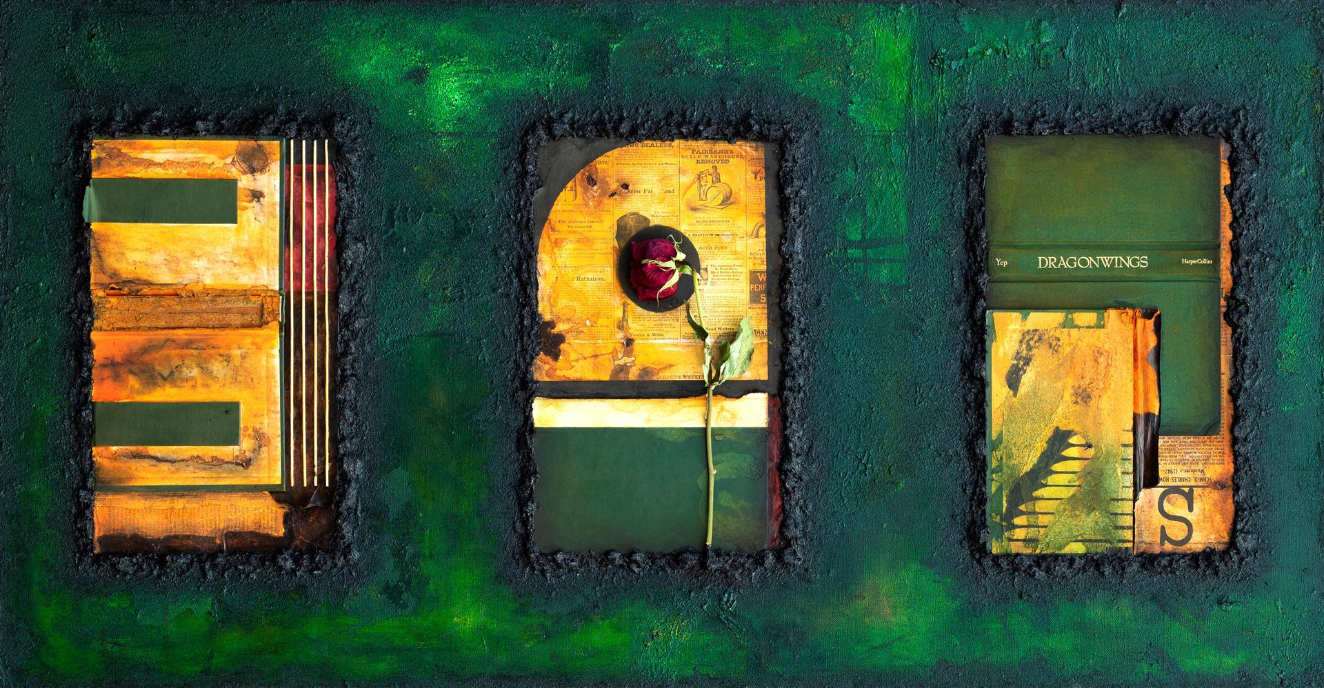 Darlene Blaurock: My artwork is Mixed Media and paint, neo=pastels and found objects. While I use a variety of materials and processes in each project my methodology is consistent. Each project often consists of multiple works, often in a range of different media, grouped around specific themes and meanings. The paintings take a personal view of social and cultural issues. The artwork is often referencing biblical themes, history and pop culture. My work explores the varying relationships between popular culture and fine art. Using collage, acrylic and watercolor paint.