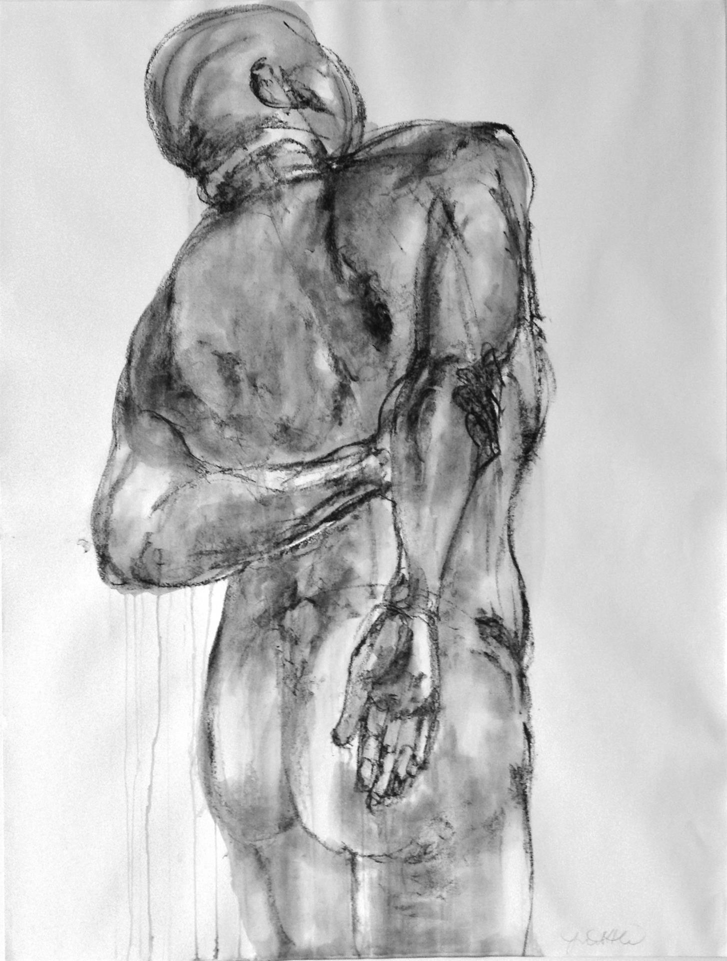 Linda Gottlieb: My art journey has been long and varied; drawing with my mother at the age of 5, my first award in the second grade for a fire prevention poster, to majoring in Fine Arts in college, where I had my first gallery showing of my abstract color field paintings; I have been a designer and an art historian. Always a painter at heart, I applied my viewpoints and skills to various creative careers in fashion, textiles, art appraisal and education. Being involved in workshops at the Art League has afforded me the re-ignition of my passion and dedication to my own artistic development. I yearn to further explore my large-scale figurative works in multiple mediums. I have developed a method of turning condensed charcoal into paint and am experimenting with adding oils and raw pigment to a uniquely surfaced ground. I hope to learn to sculpt and paint from the generous and accomplished instructors at the League. A residency would provide the opportunity, locale and community I can thrive in artistically. Having begun my life drawing education at the Art Students League at the age of 16, I feel I can offer a unique workshop that addresses some of the intimidating obstacles many artists experience when working from the live model; that of foreshortening and proportion. My experience teaching all ages of children, college students and adults combined with my own (ever developing) proficiency would be a positive contribution to the development of aspiring artists in a workshop setting. My dedication and involvement with the Art League, as demonstrated by my volunteering to monitor figure drawing workshops, willingness to step in and teach children’s classes when asked, would only be enhanced by a residency.