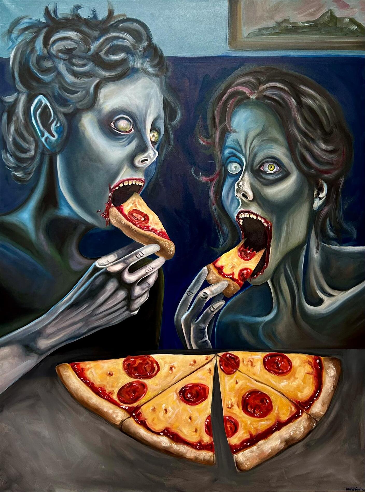 Anna Laimo (Smithtown, NY): Anna works primarily in oil painting and printmaking, creating surreal, satirical art pieces featuring fantastical creatures and plant life. She explores the freedom of painting and the structure of printmaking, producing emotionally evocative works.